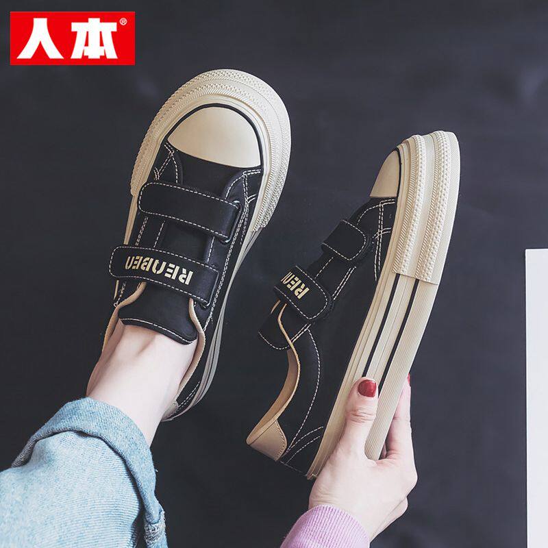 人本魔术贴帆布鞋女2026春季薄款ins百搭休闲板鞋懒人鞋显瘦女鞋