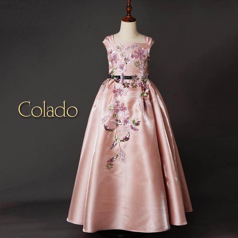 Colado扣诺女童大气礼服粉色公主长裙刺绣亮片儿童连衣裙高端定制