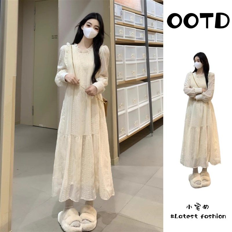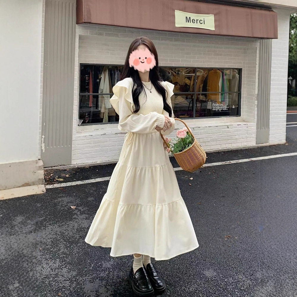 秋装2025新款法式仙女气质荷叶边连衣裙温柔风奶甜收腰公主长裙潮