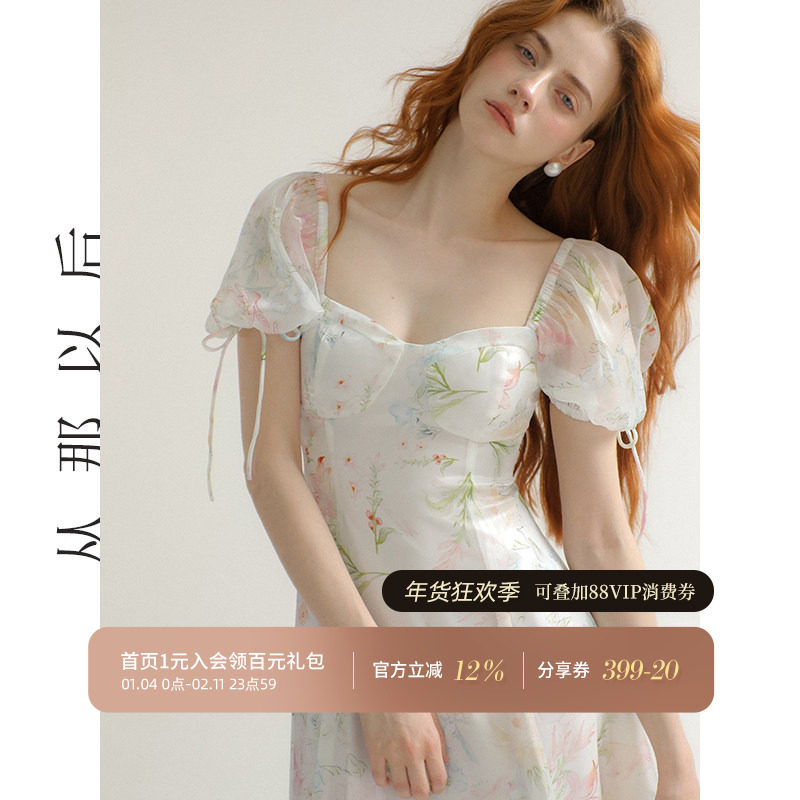 从那以后法式高级感连衣裙夏公主长裙小个子裙子白色碎花裙女夏季