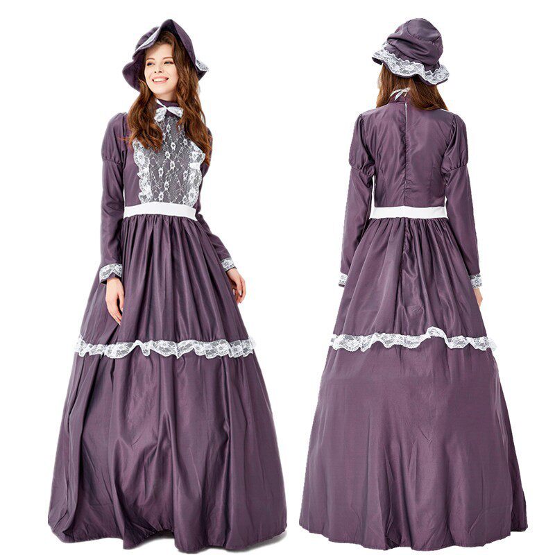 欧美大码女长款暗紫色连衣裙复古宫廷装贵妇公主长裙礼服套装女装