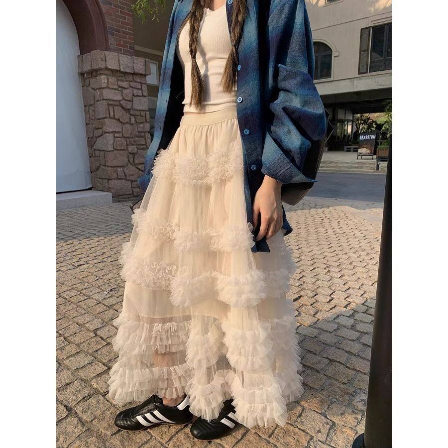 法式层层蛋糕网纱半身裙甜美百搭气质优雅松紧腰公主长裙秋冬新款