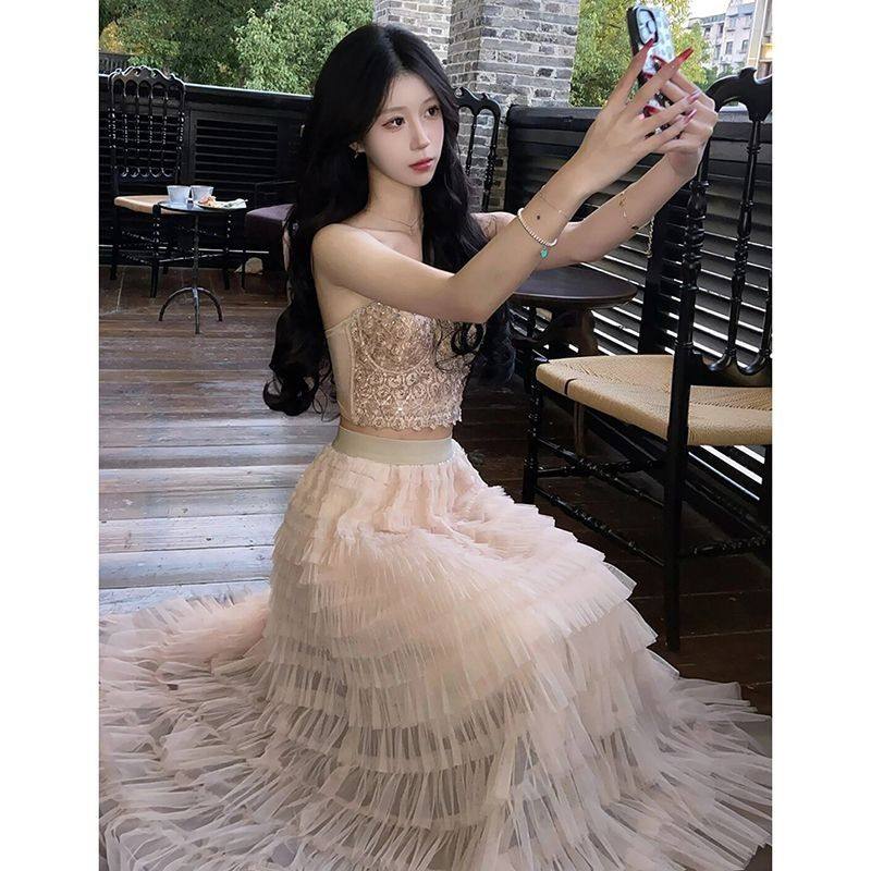 韩系公主甜美风网纱蛋糕裙褶皱层叠多层次感半身裙蓬蓬裙仙女长裙