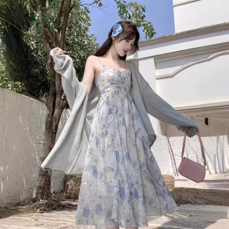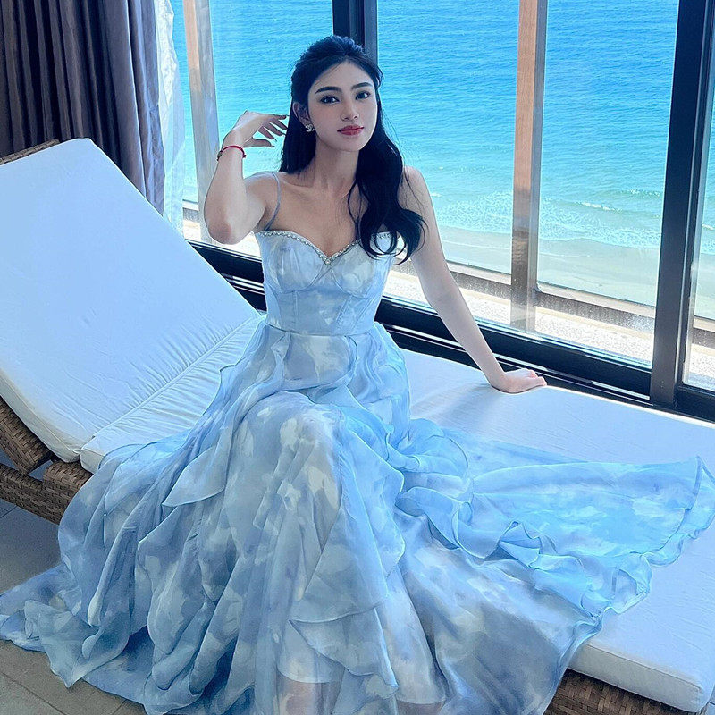 超仙气温柔风蓝色吊带连衣裙女夏2025新款纯欲甜美气质公主长裙潮