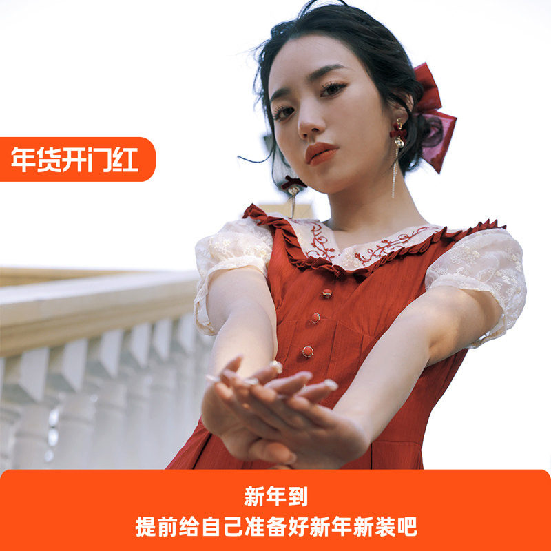 花间裳/一纸红笺/原创法式刺绣仙气波尔多红气质公主长裙连衣裙