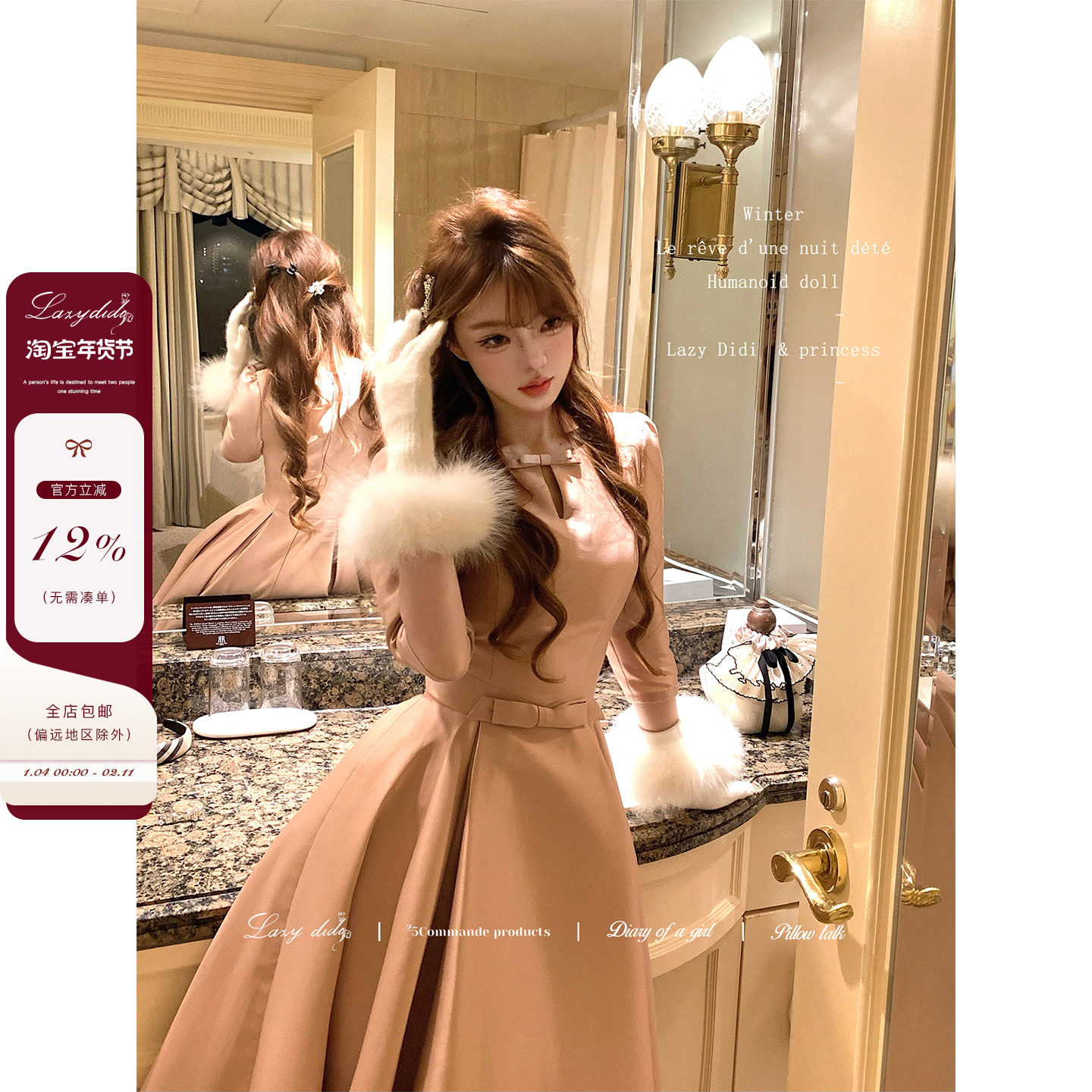 法式初恋灯芯绒连衣裙女秋冬高级感气质收腰甜美仙女在逃公主长裙