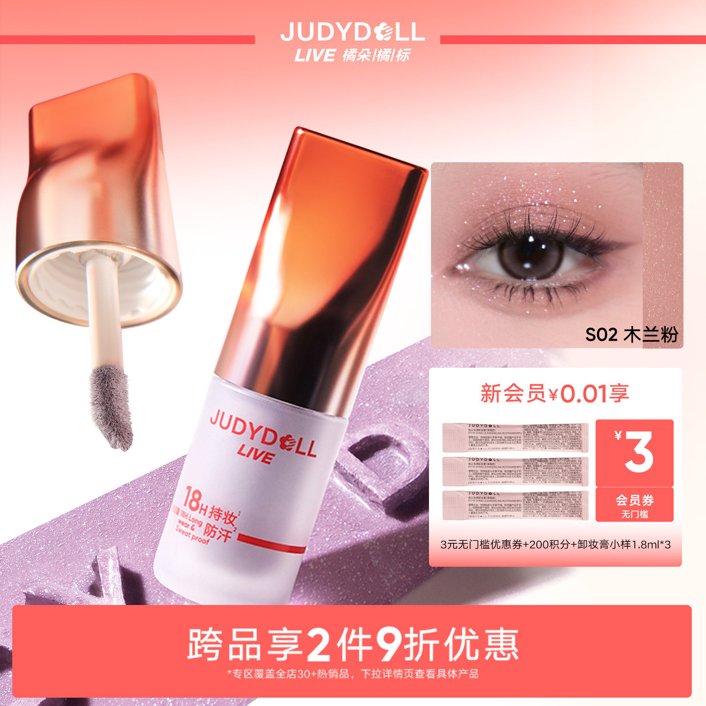 Judydoll橘朵橘标液体眼影哑光搓搓亮闪片爆闪细闪珠光清透融肤