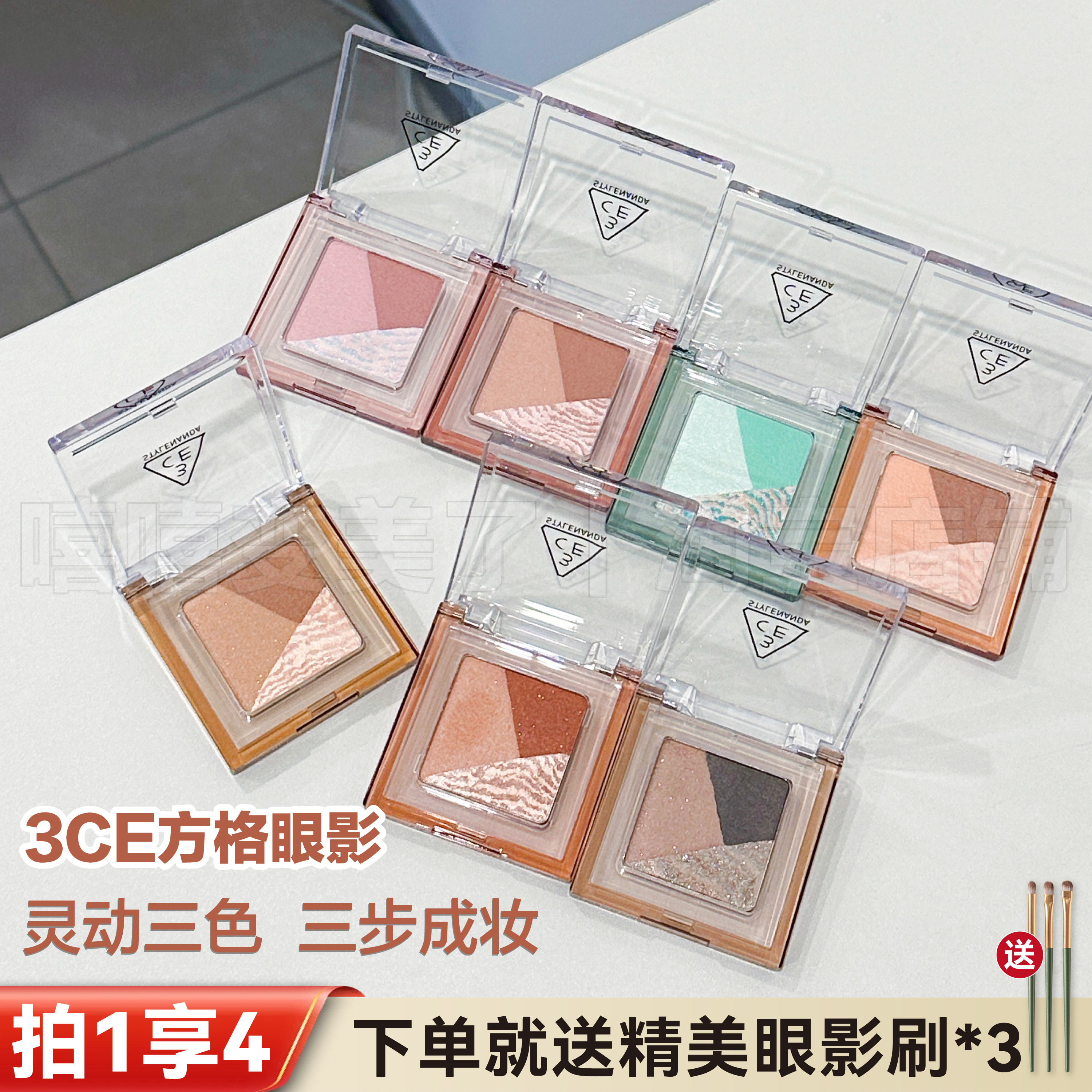 【官方正品】3CE 12色眼影盘 哑光珠光大地色新手水泥盘杏粉盘 T