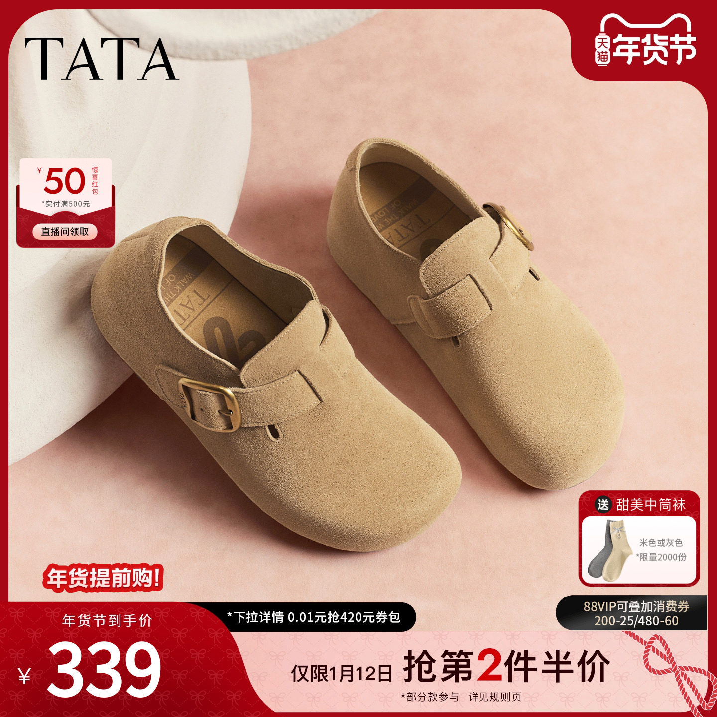 TATA他她女鞋2026春季新款勃肯鞋时尚百搭深口鞋内增高鞋4XN04AM6