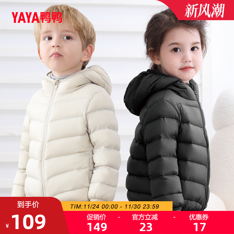 鸭鸭儿童羽绒服男童女童2025秋冬反季轻薄款时尚面包保暖宝宝外套