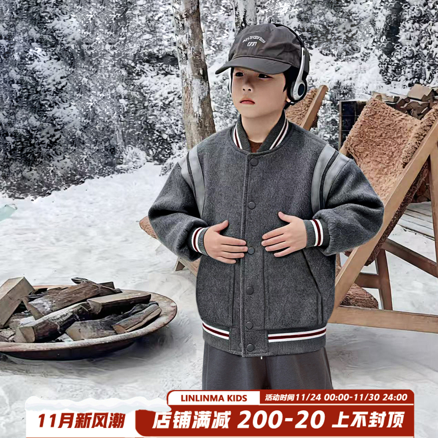 霖霖妈童装男宝宝外套冬季儿童夹克冬款中大童男童棒球服冬装夹棉