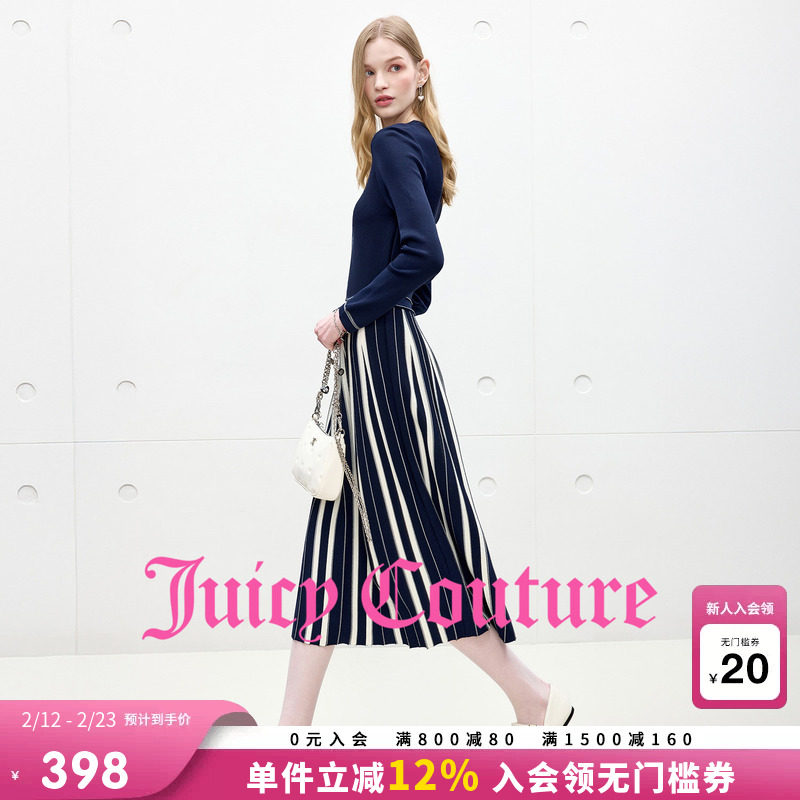 Juicy Couture橘滋连衣裙女法式优雅撞色百褶长袖气质针织长裙