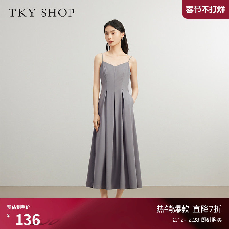 TKY SHOP收腰百褶吊带连衣裙夏季简约时尚吊带裙气质显瘦中长裙子