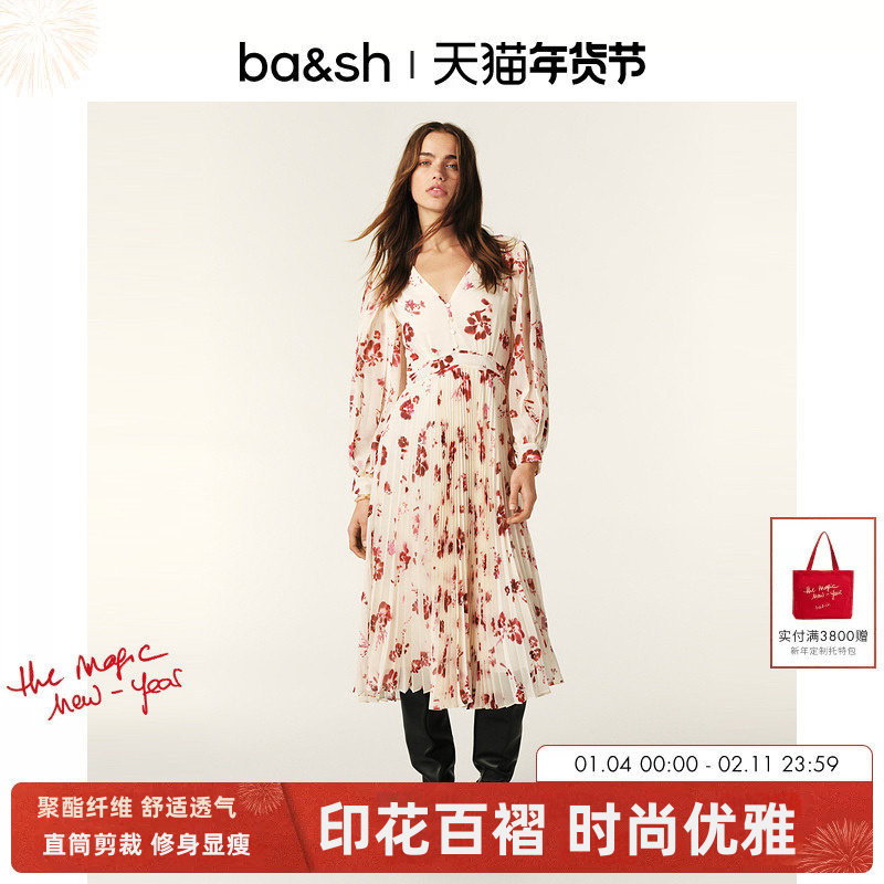 bash春季双生玫瑰法式度假风印花百褶长裙迷笛茶歇连衣裙1E25PATL