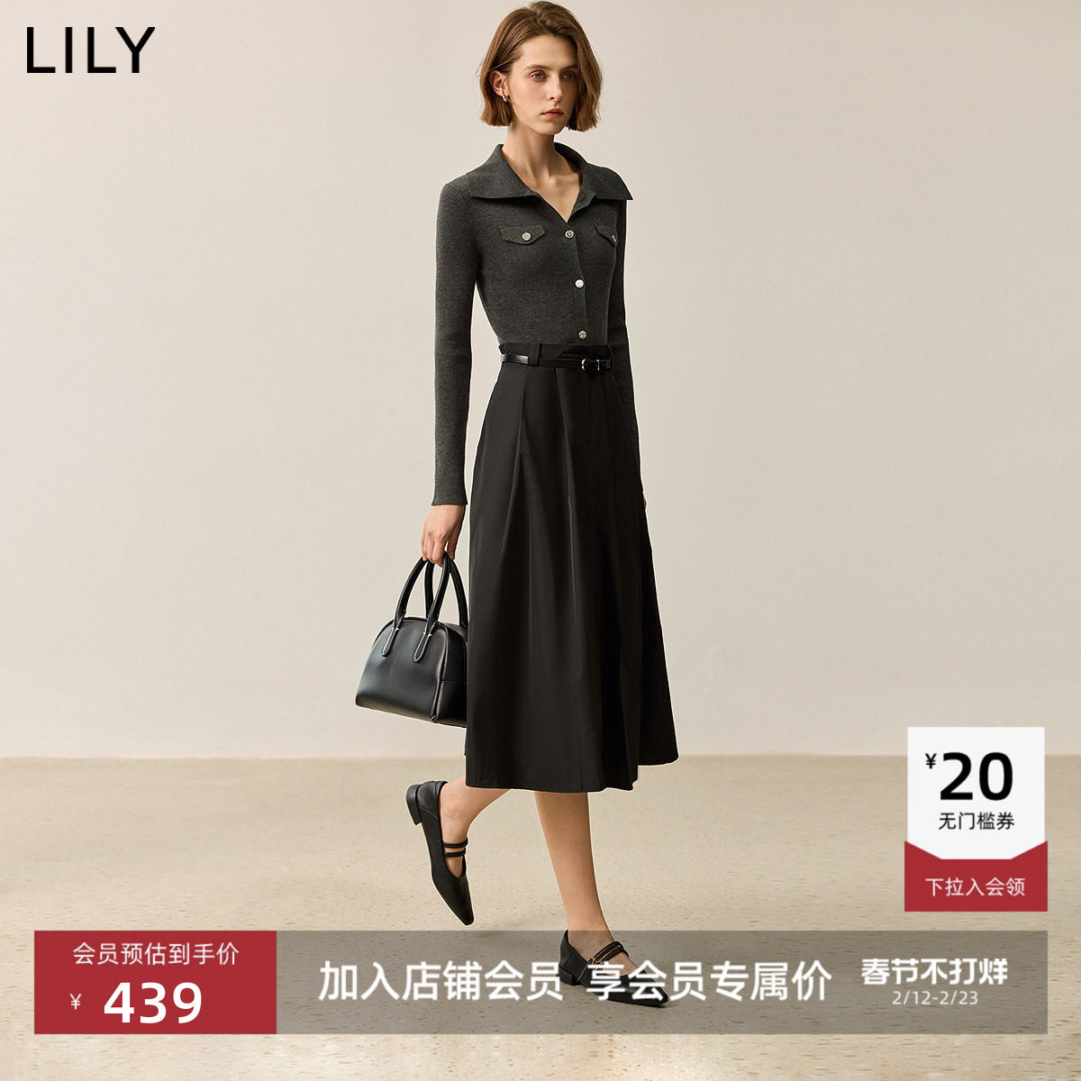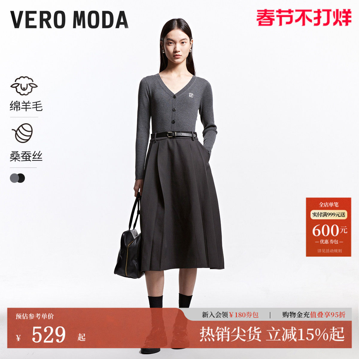 Vero Moda连衣裙2026春季新款轻熟法式绵羊毛桑蚕丝针织百褶长裙