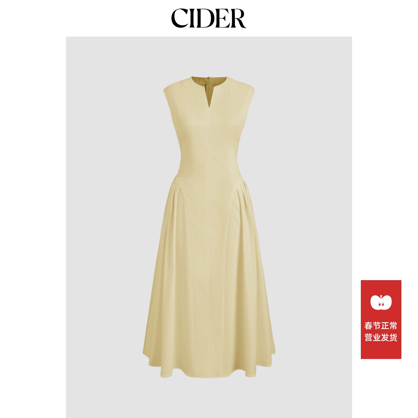 CIDER 夏季新品女装色V领无袖百褶长连衣裙 109547024