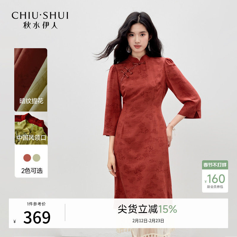 秋水伊人气质国风连衣裙2026年春季新款女装休闲百褶纱新中式长裙