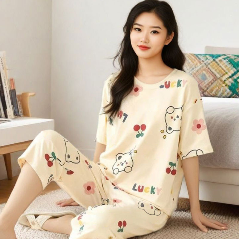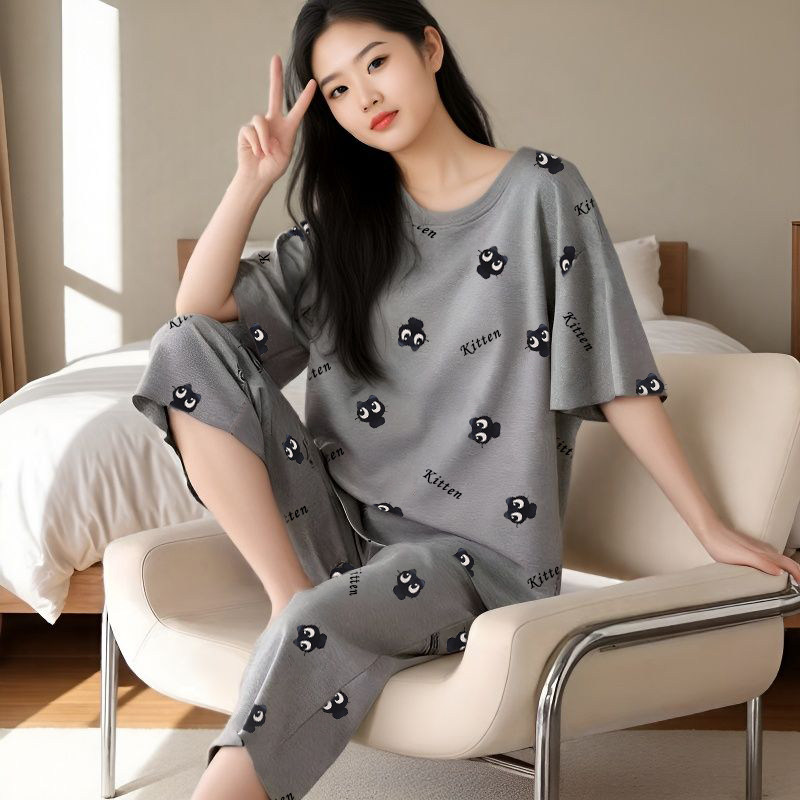 【一口价】女士卡通夏季短袖七分裤家居服套装夏天七分裤女生睡衣