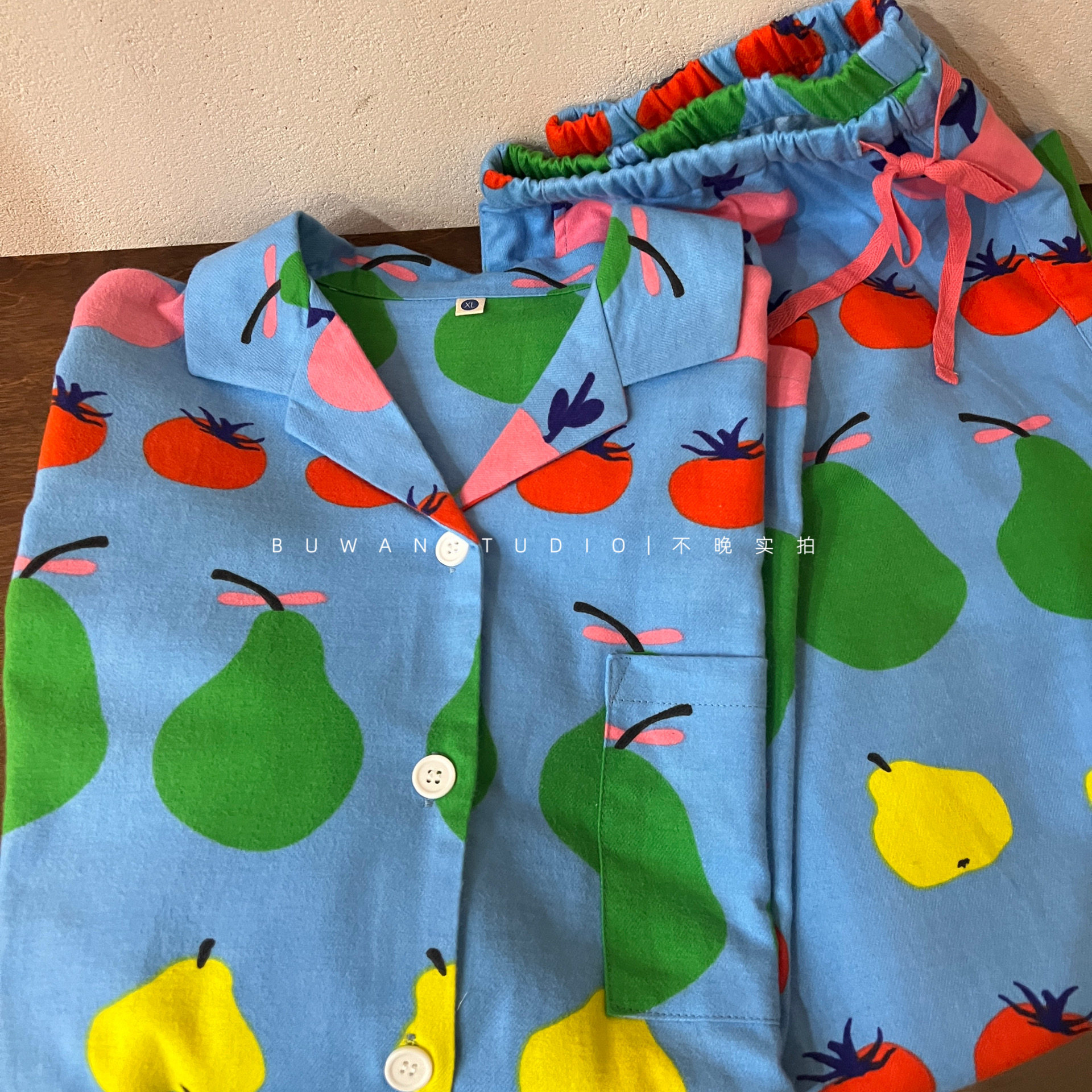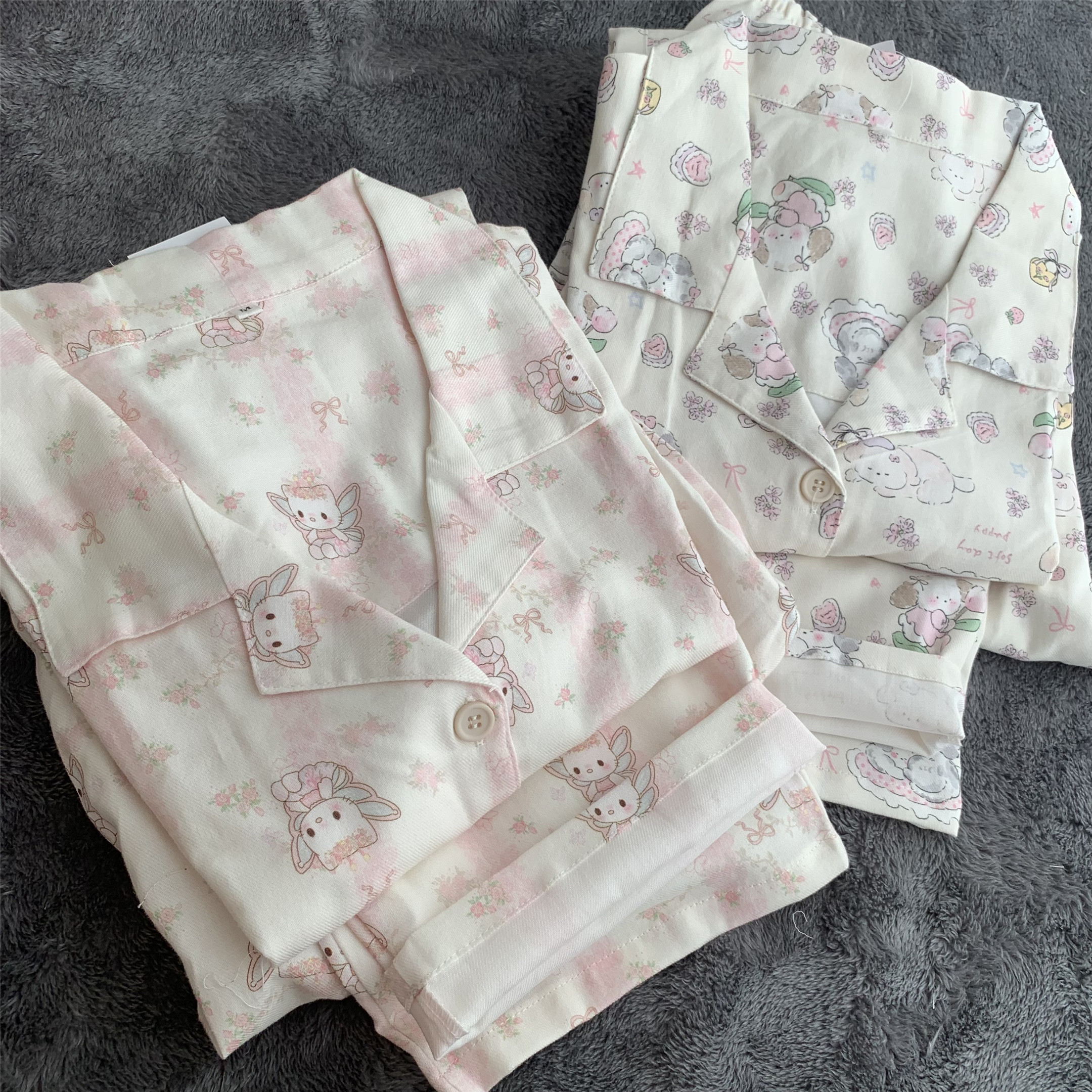 纯棉双层纱布薄款数印清新唯美风甜美女生睡衣家居服春夏长袖长裤