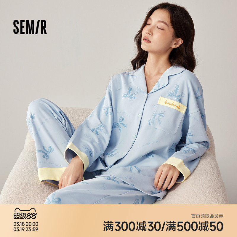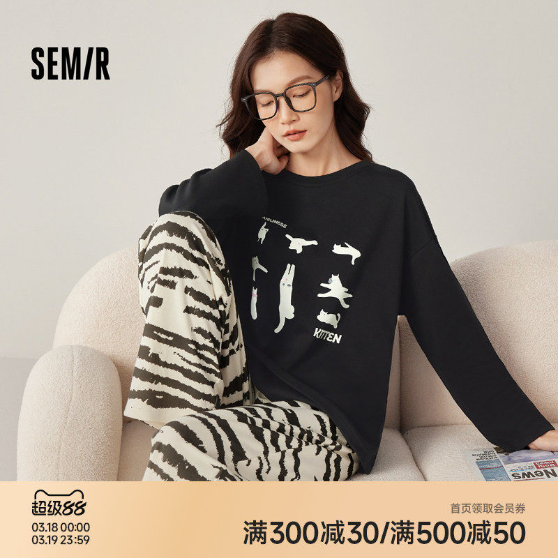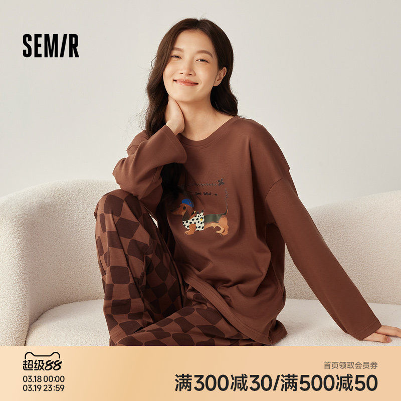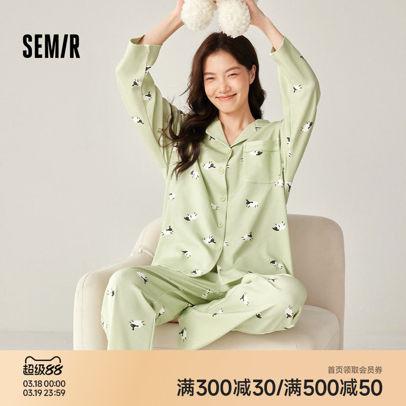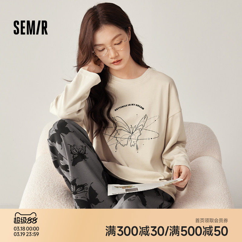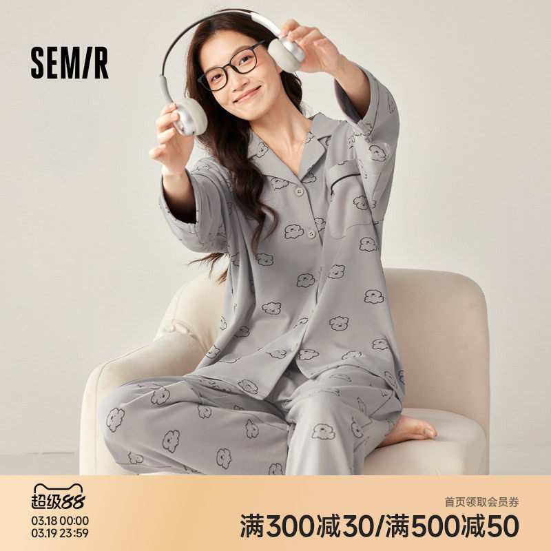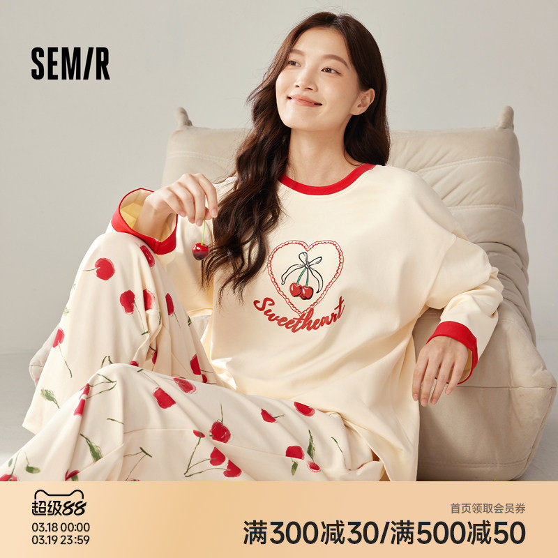 森马女士家居服套装纯棉秋冬季2026新款甜美印花慵懒松弛女生睡衣