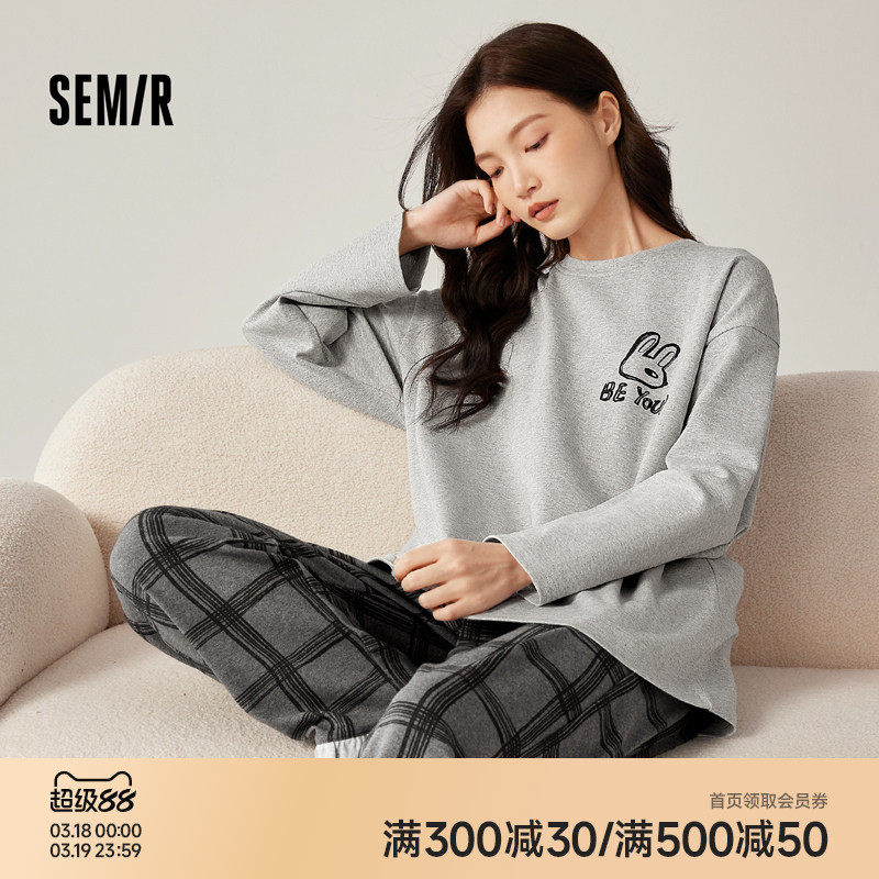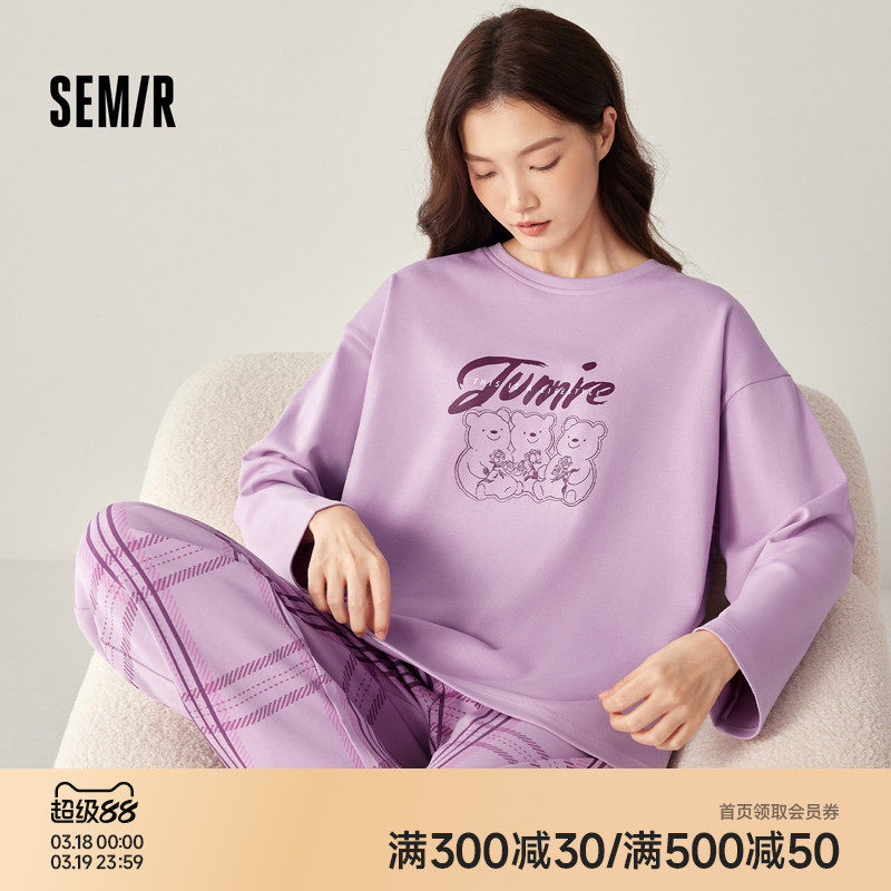 森马女士家居服套装纯棉秋冬季2026新款可爱甜美慵懒松弛女生睡衣