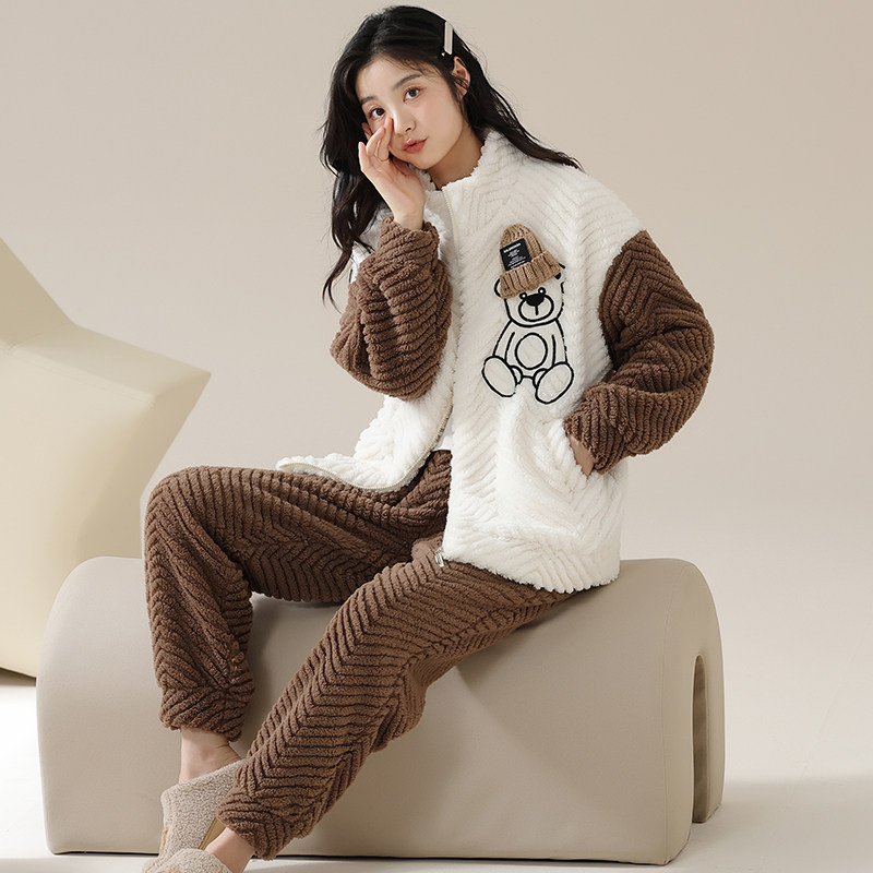 森马女士家居服套装纯棉秋冬季2026新款小熊印花外穿遛弯女生睡衣