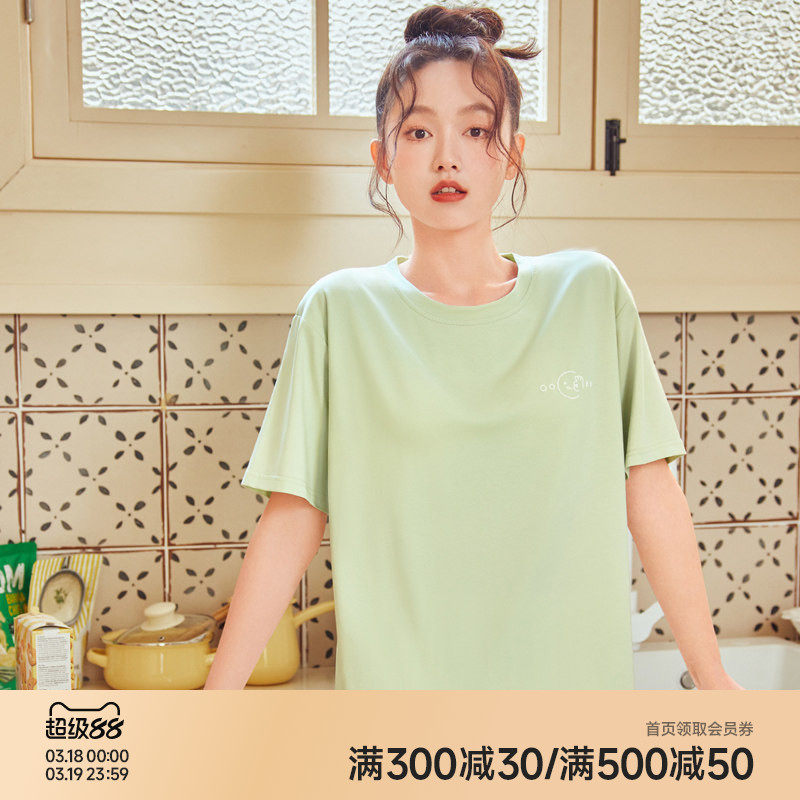 芬腾睡裙女士夏季纯棉薄款可爱短袖睡衣家居服女生夏天性感连衣裙