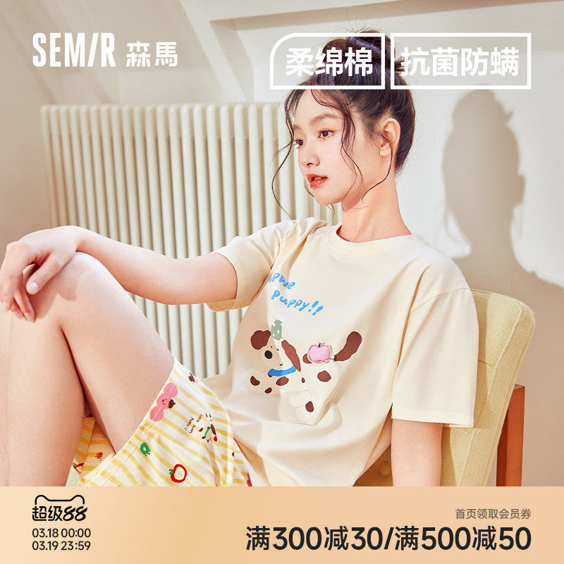 森马女士家居服套装夏季薄款棉可外穿内搭女生睡衣短袖短裤2026款