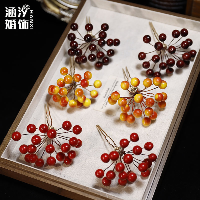 新中式新娘头饰红色果子发叉发簪百搭跟妆结婚敬酒服晨袍发型配饰