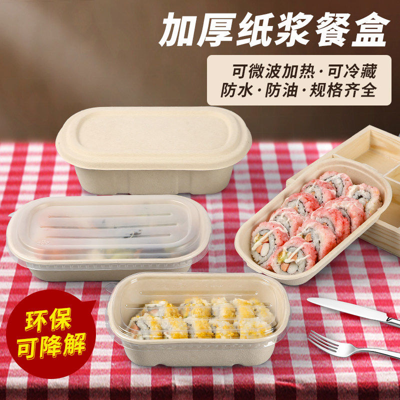一次性餐盒可降解环保外卖打包便当饭盒长方形轻食沙拉纸浆快餐盒