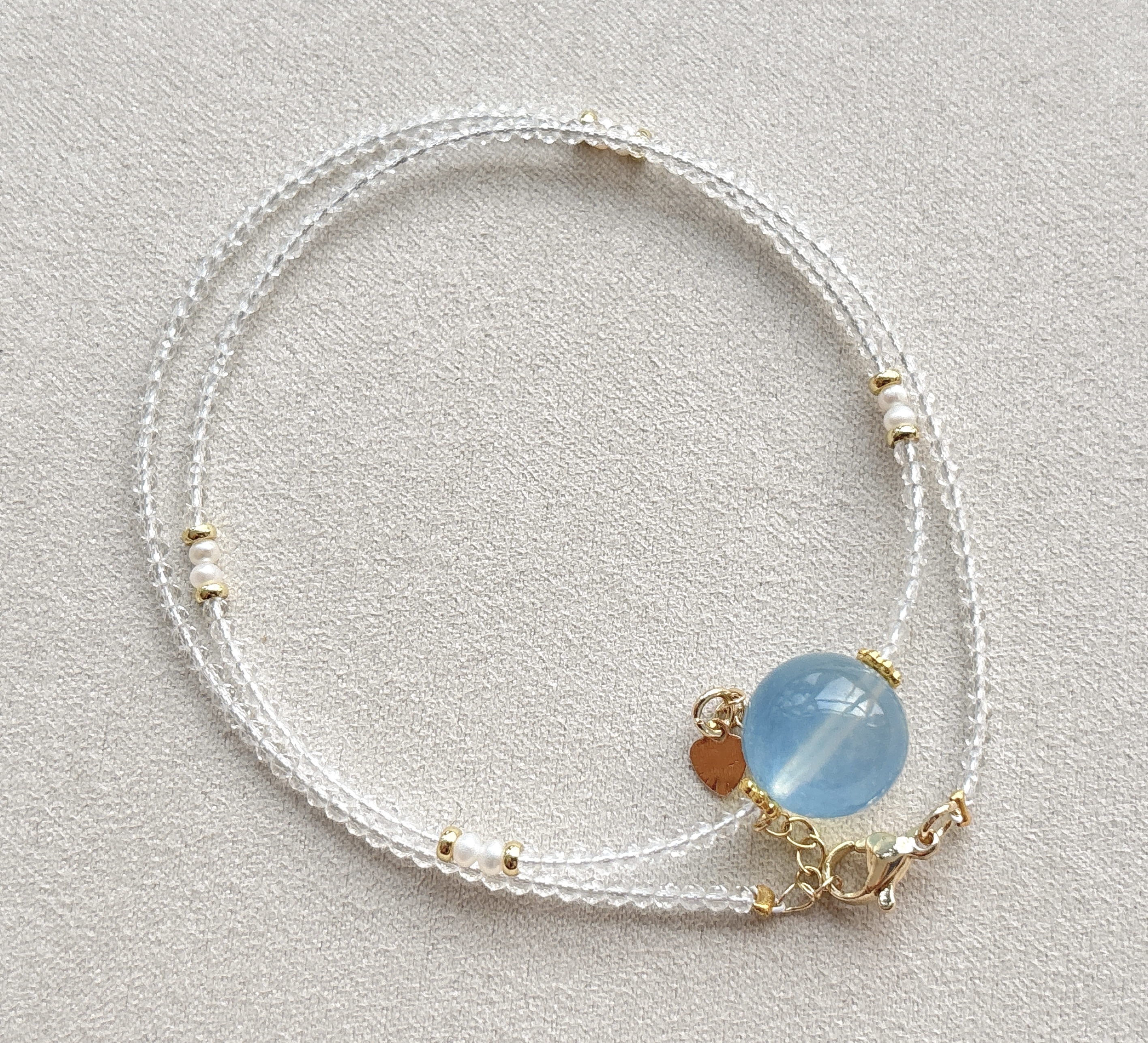 1A396 天然白水晶转运珠锁骨项链15mm圆珠刻面款diy原创首饰礼物