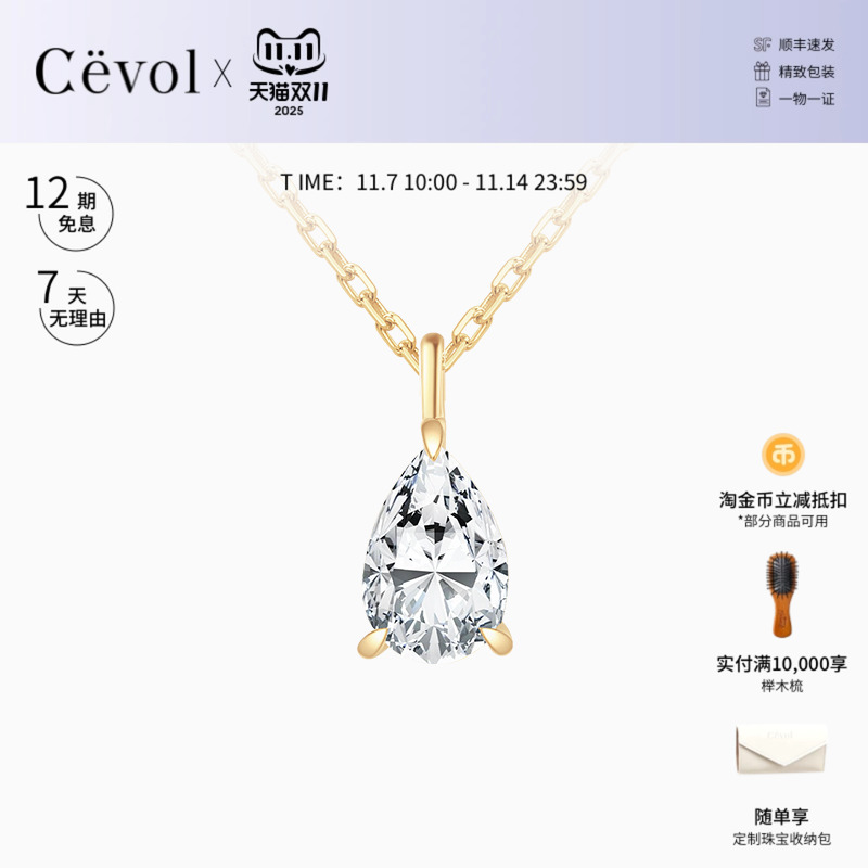 【店长推荐】Cevol新奢钻石 Classic18K金真钻石水滴吊坠锁骨项链