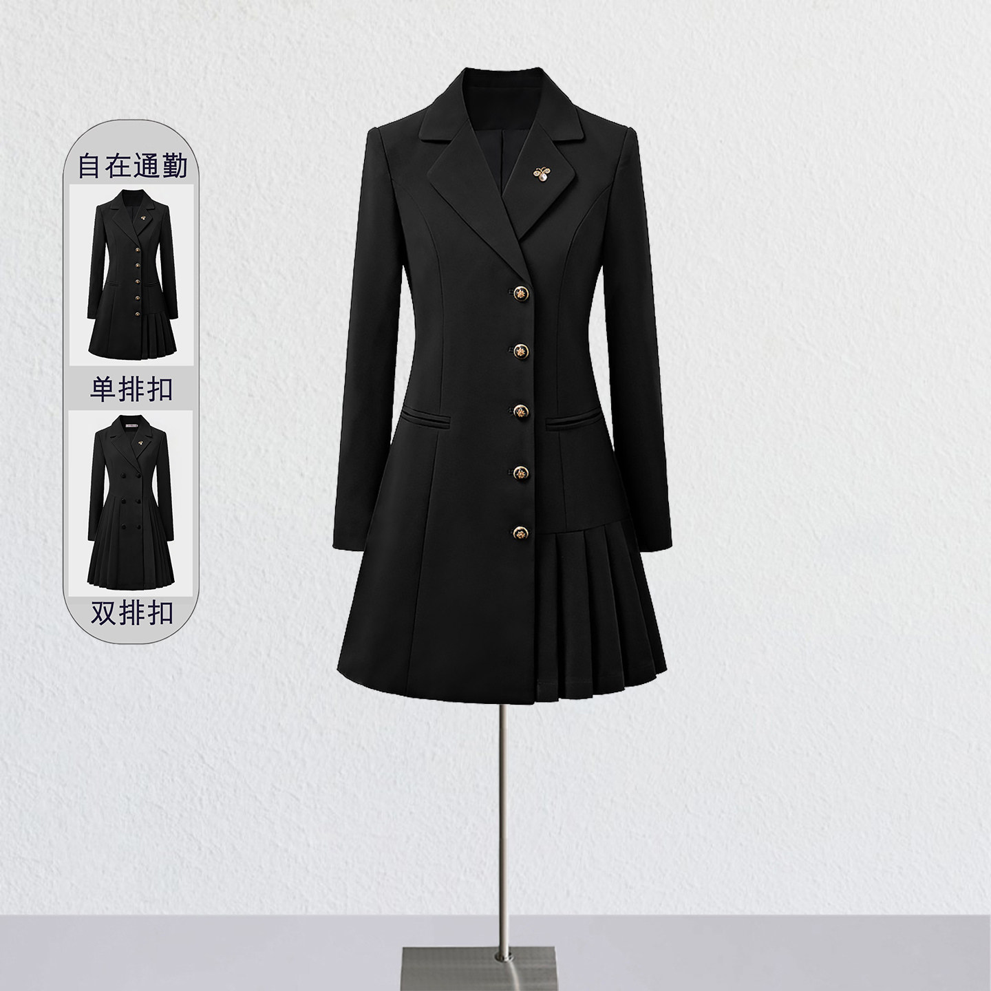 学院风黑色长袖西装连衣裙2025春秋季新款大学生短款百褶裙女