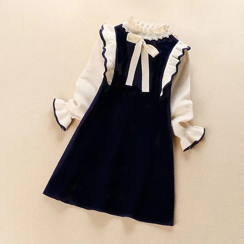 女童连衣裙秋冬季新款气质淑女儿童公主裙学生女孩长袖针织裙秋装