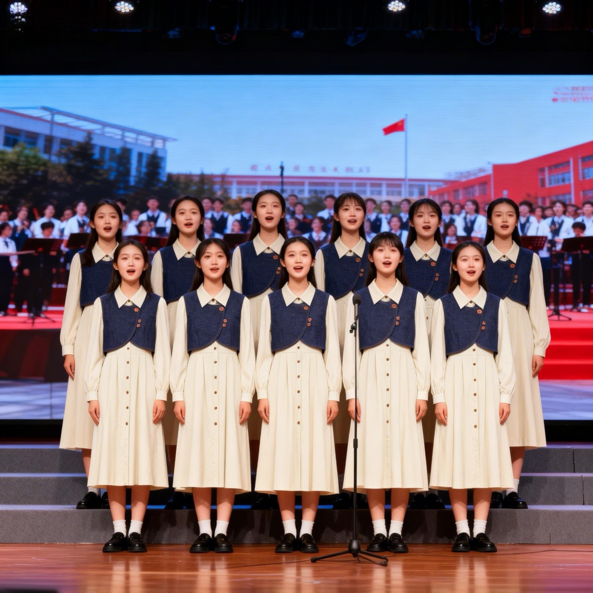两件装连衣裙初高中毕业照班服春秋长袖套装小学生红歌合唱演出服