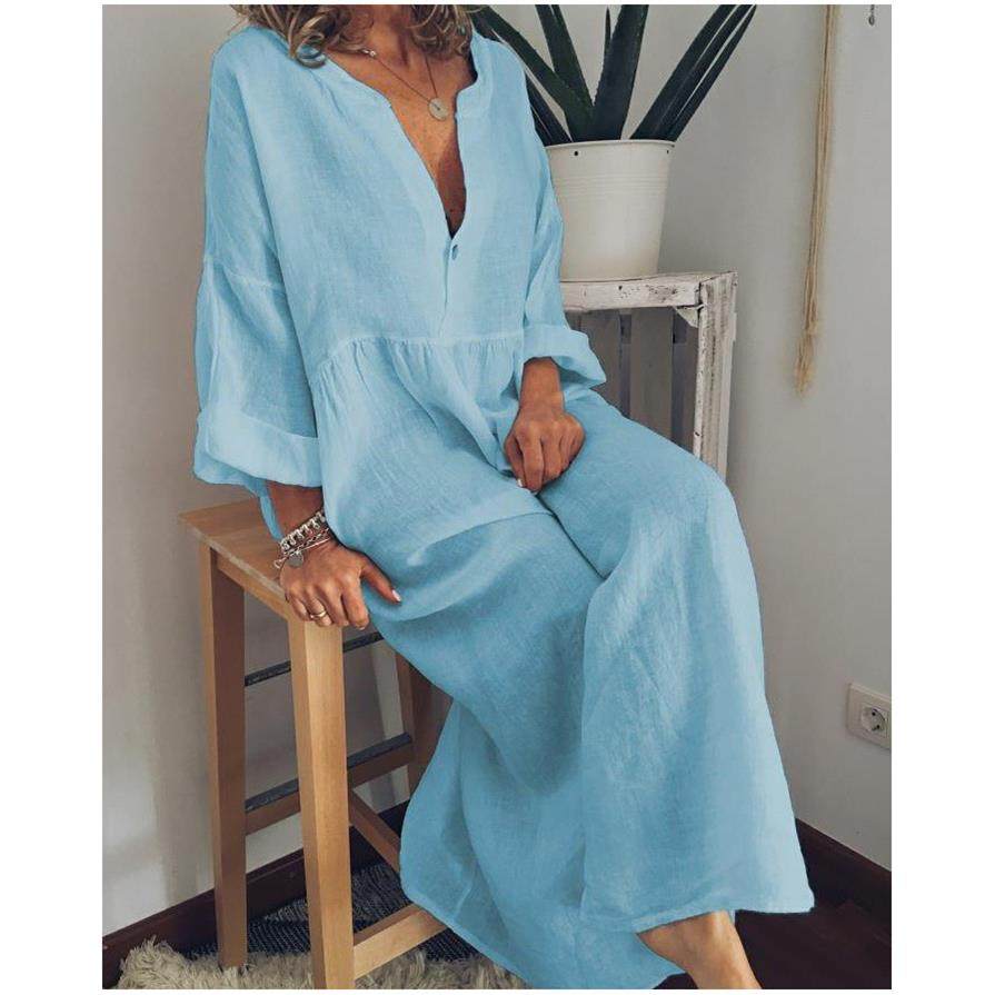 2020春秋新款wish欧美大码女装留学生文艺长袖宽松连衣裙节日礼服