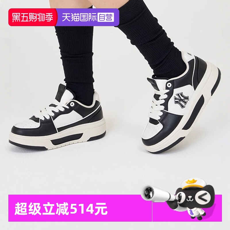 MLB男女鞋NY复古拼接撞色学长鞋厚底增高情侣运动板鞋3ASXLSL4N