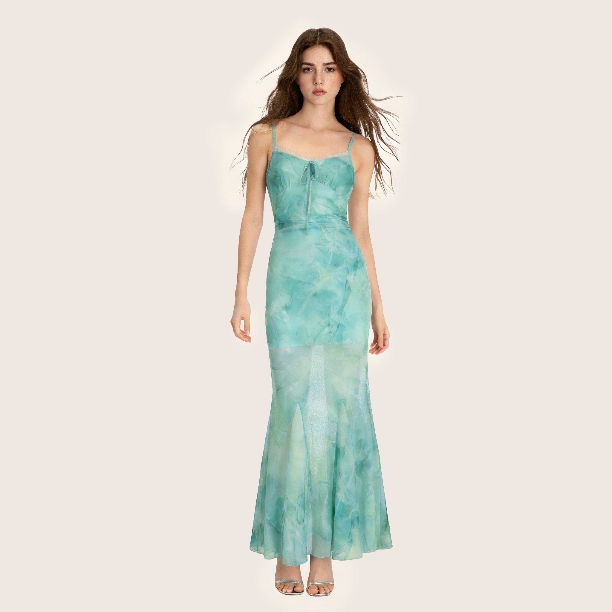 - 印花鱼尾连衣裙