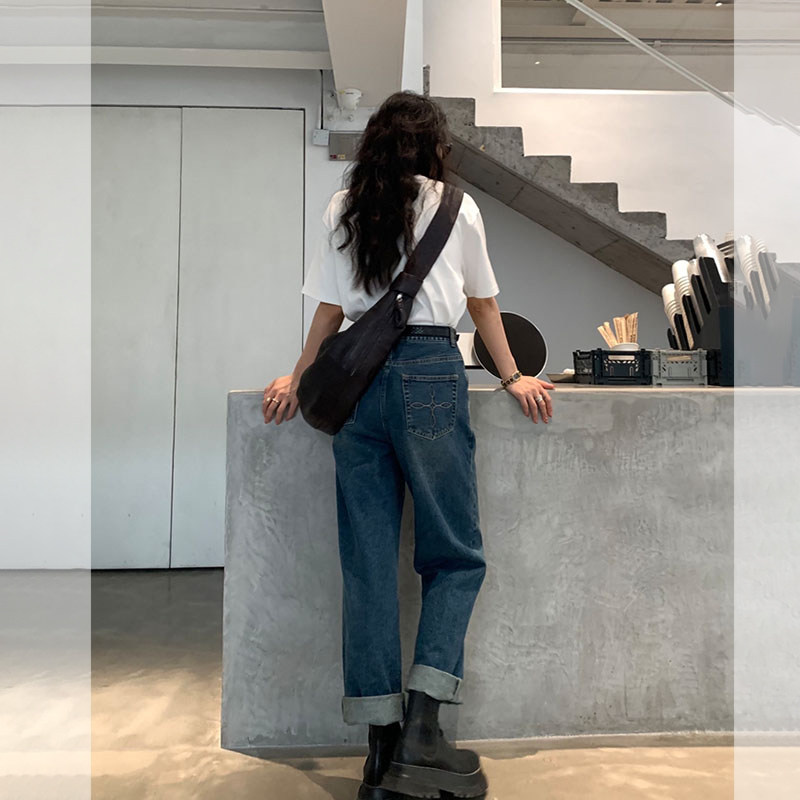 - 休闲直筒牛仔裤女