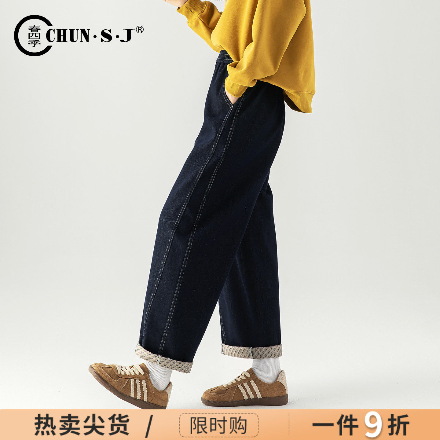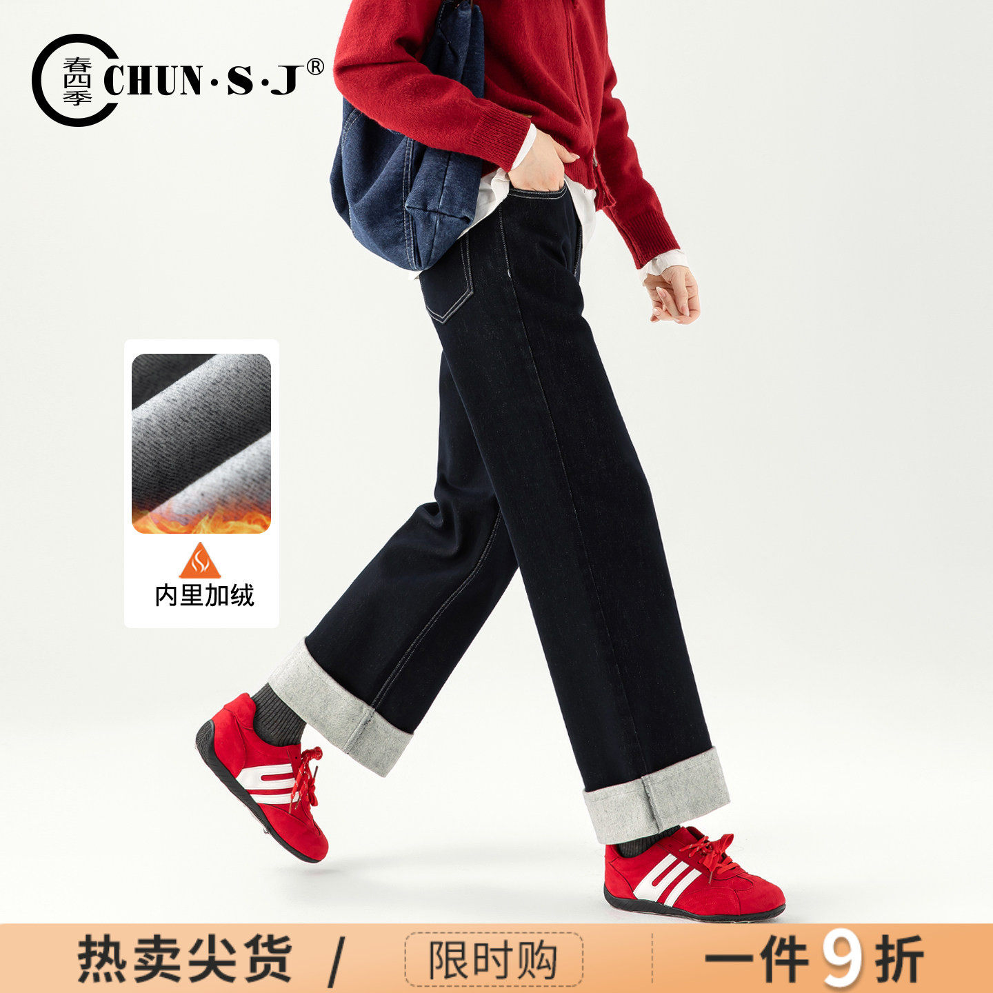 - 加绒牛仔裤