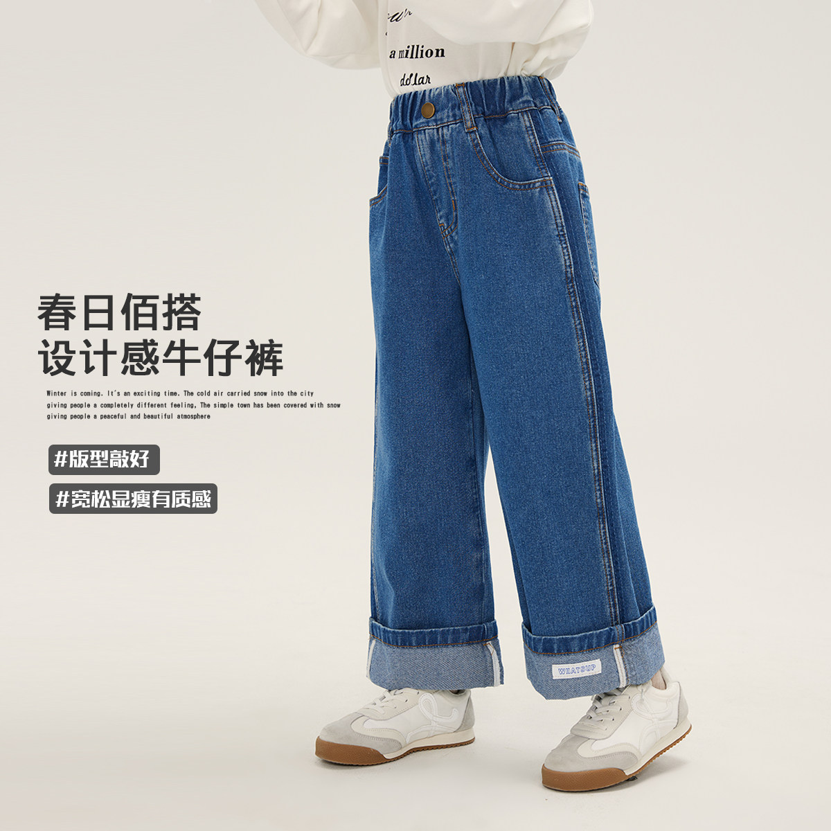 布丁哈鲁童装春装女童洋气2025春秋季新款儿童卷边直筒阔腿牛仔裤