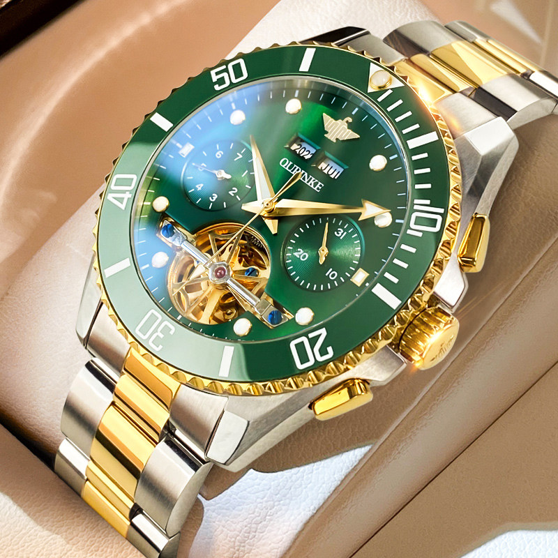 瑞士正品牌绿水鬼男士手表男款镂空陀飞轮防水全自动机械名表十大