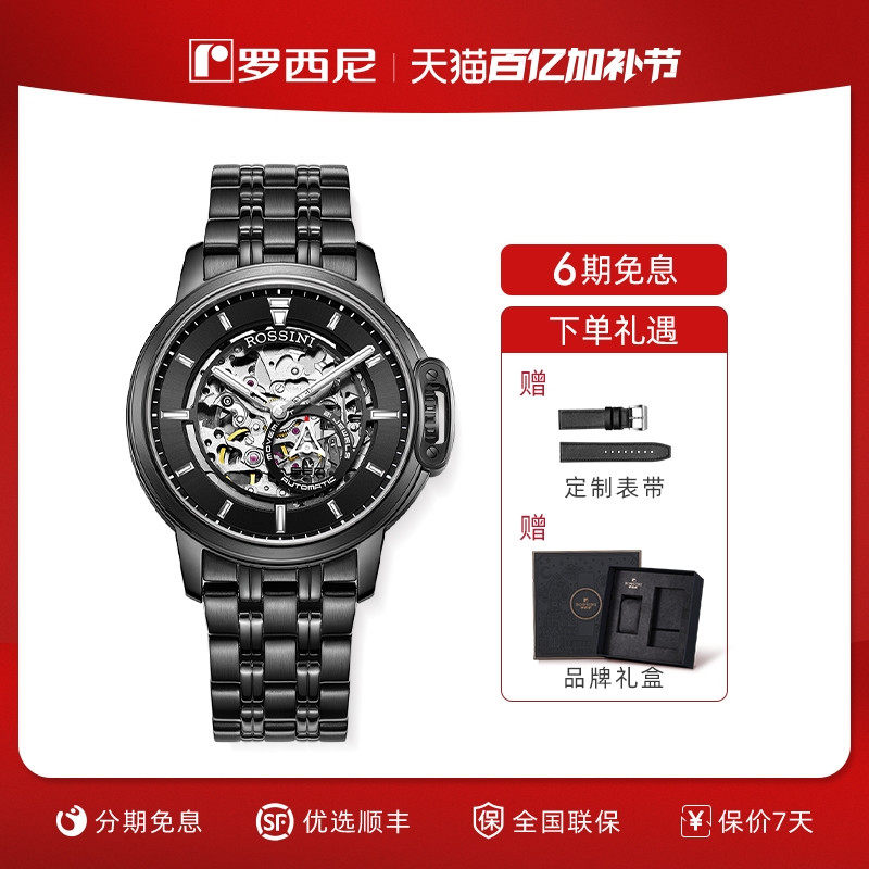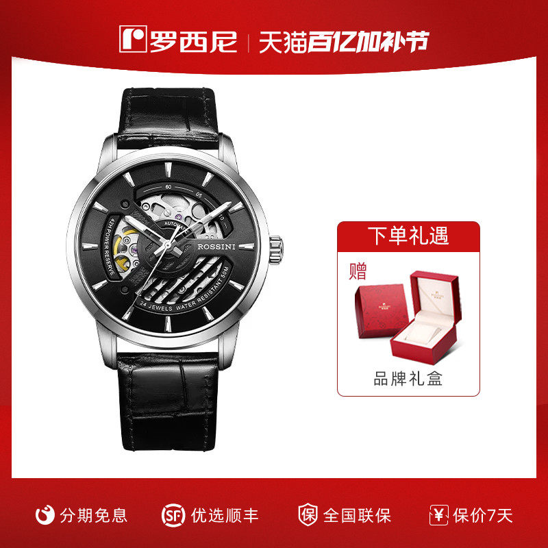 【映像系列】罗西尼手表男机械表正品防水全镂空男士腕表619909