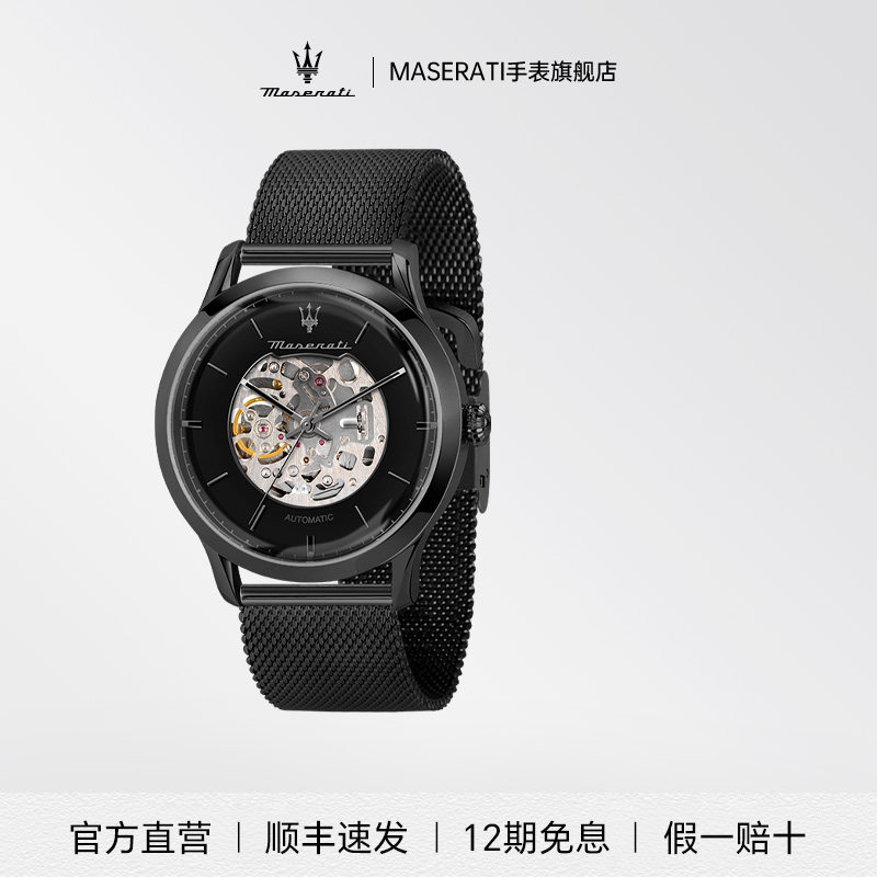 玛莎拉蒂机械表男镂空防水手表简约小众正品黑表盘腕表送男友礼物