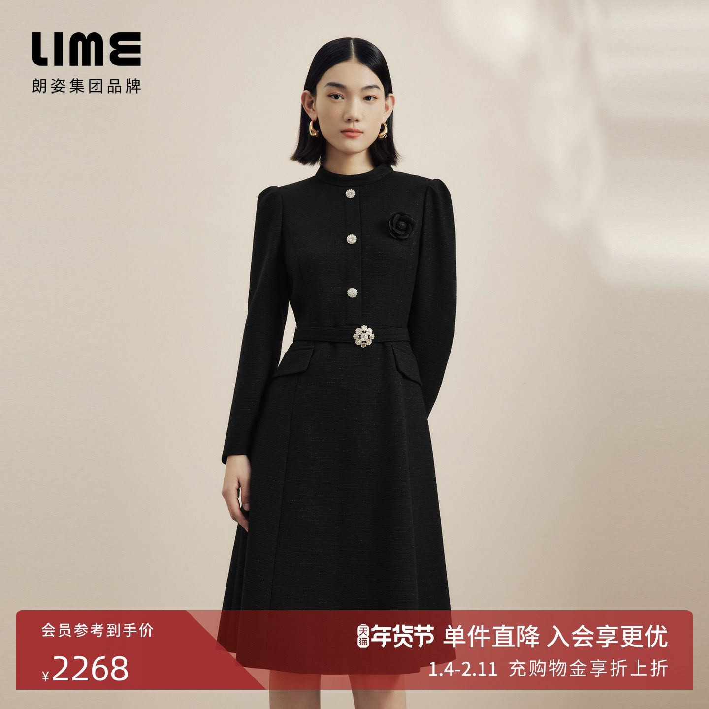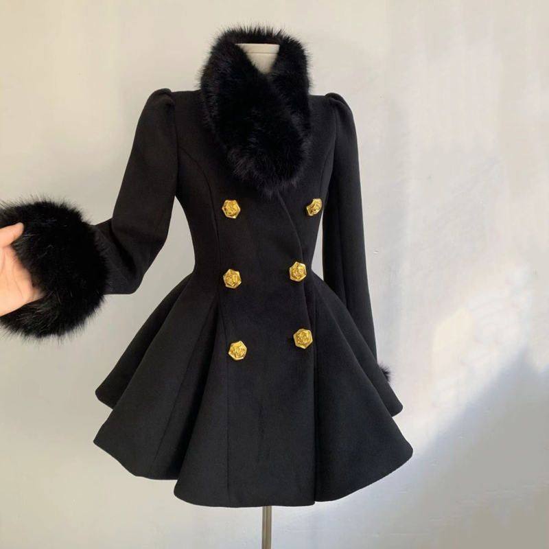 2025冬季新款通勤气质黑色连衣裙秋冬单排扣毛呢裙子女冬中长款