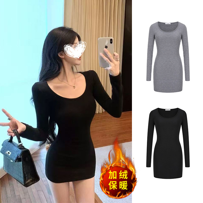 MosesQueen魔西女王加绒加厚黑色连衣裙秋冬季内搭显瘦包臀短裙子