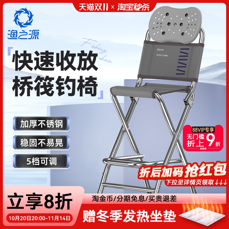 渔之源户外加厚不锈钢钓鱼椅桥钓椅子升降腿桥筏钓椅便携钓鱼凳子