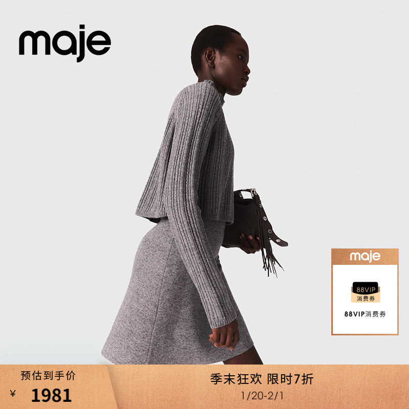 季末7折Maje2025秋冬新款女装法式时尚灰色半高领两件套连衣裙