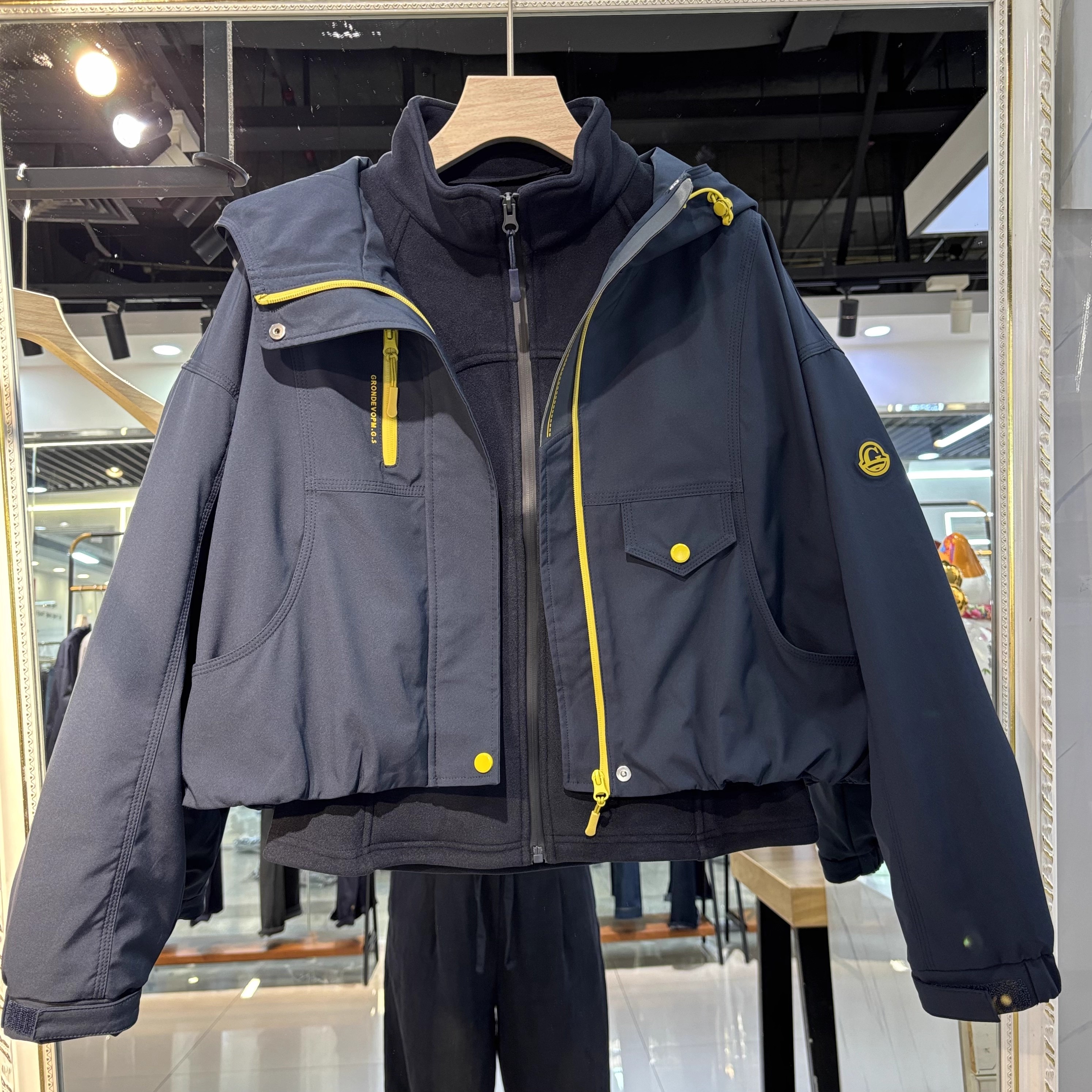 短款连帽冲锋衣德绒加厚内胆两件套装二合一秋冬新款洋气工装上衣