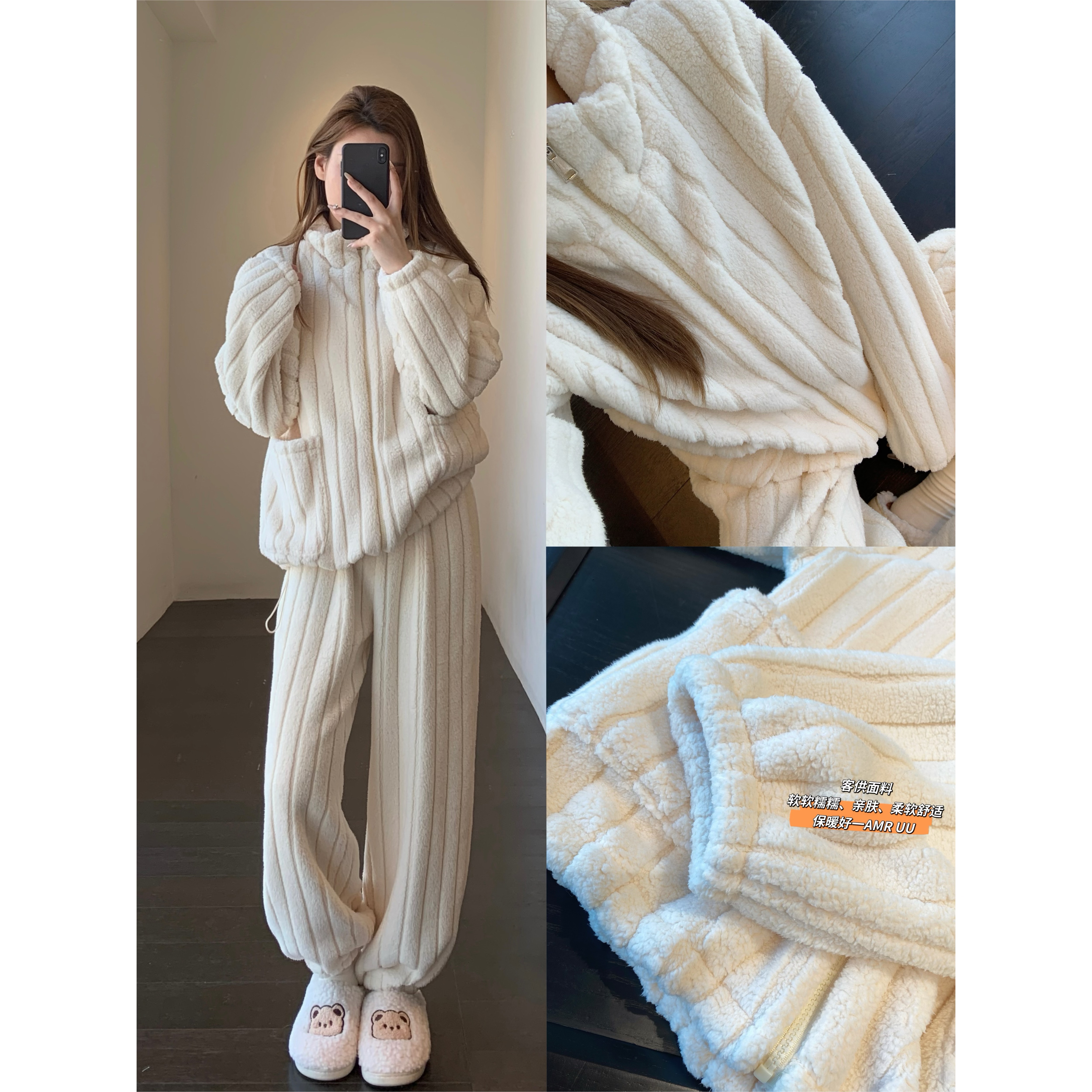 AMR UU◆可外穿的家居服 保暖舒适两件套睡衣女新款冬季套装加厚